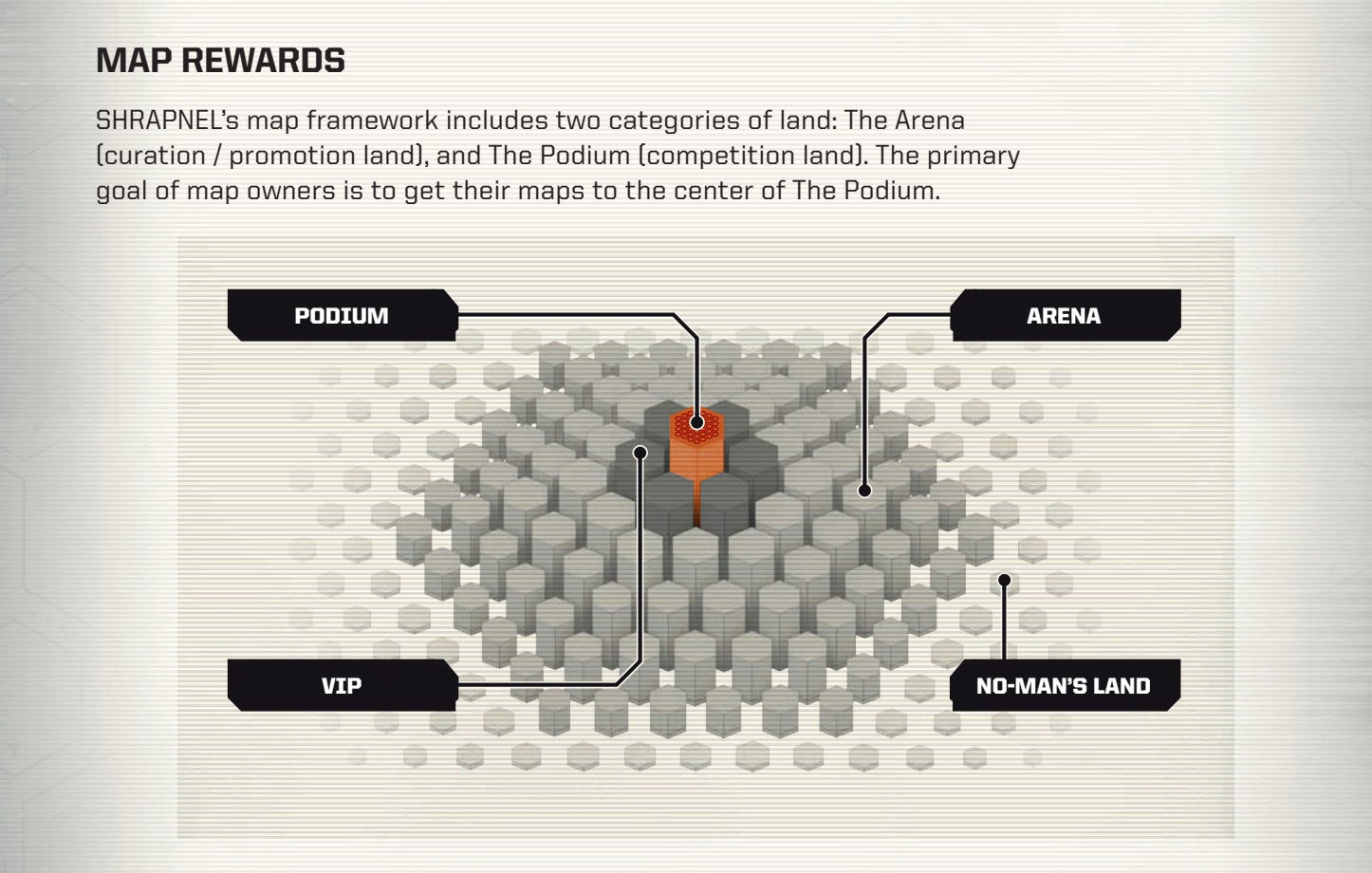 Shrapnel will likely release studio-designed maps as well as work with partners on example lands. Those could have automatic initial “Podium Status”.