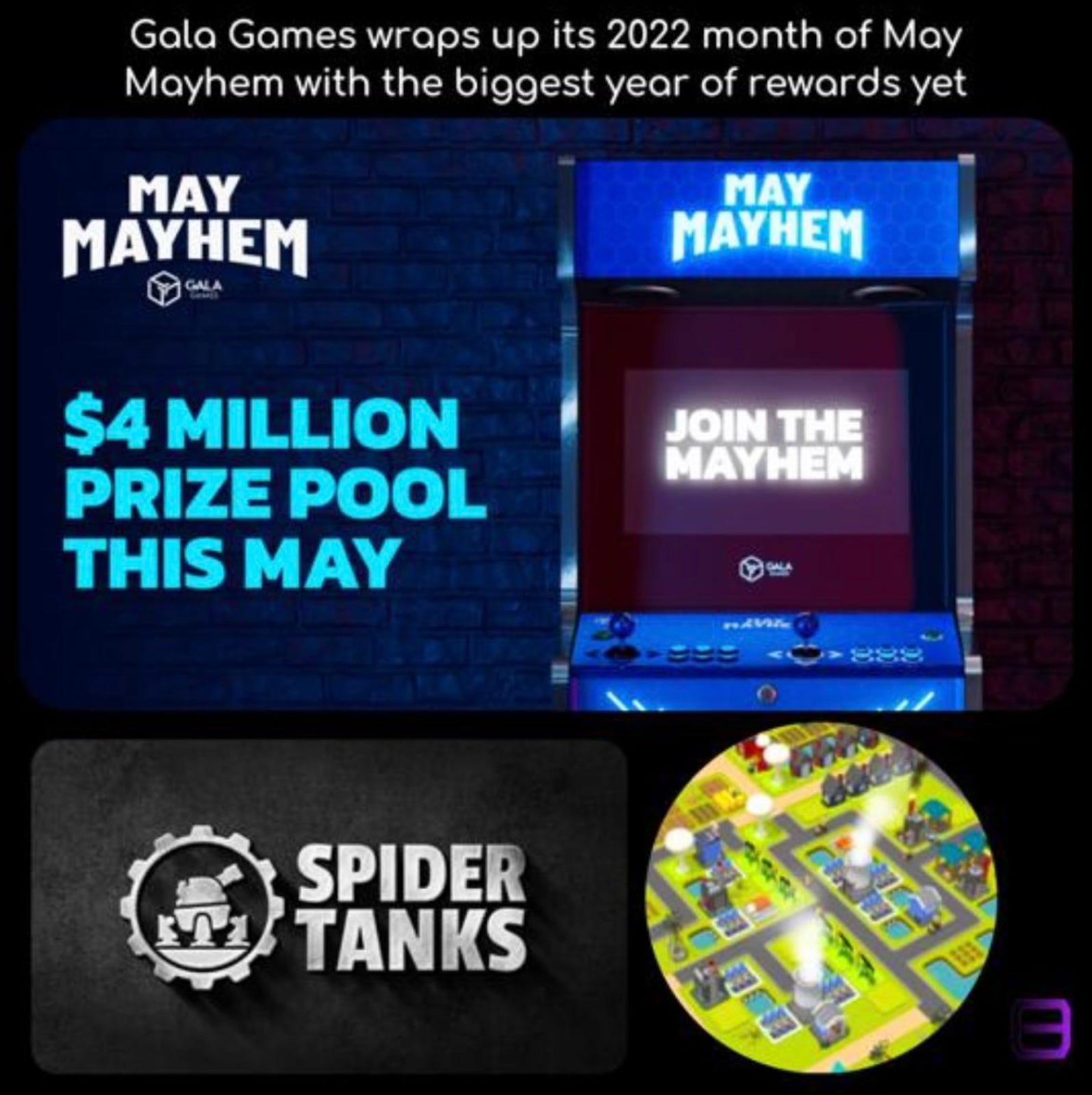 Gala Games wraps up its 2022 month of May Mayhem and announces it has been the most “rewarding month ever” in the history of the event. Gala Games revealed that over $4 million dollars worth of prizes were given away to players, as well as 100,000 free NFTs. The free NFT assets will continue to be dropped over the coming weeks. Here is a short summary of the prizes won!